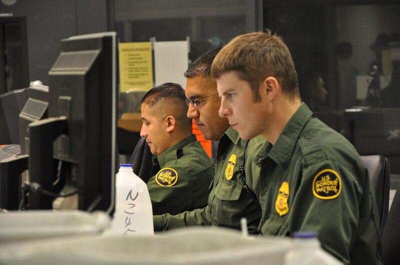 • Nogales, Arizona, USA: Border Patrol agents watch surveillance cameras from headquarters to monitor the border of Nogales.