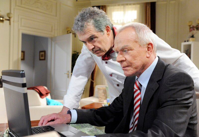 André (Joachim Lätsch, l.) erfährt von Werners (Dirk Galuba, r.) Überwachungskamera im Büro.