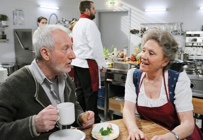 • Hildegard (Antje Hagen, r.) ist überrascht, als Gustl (Sepp Schauer, l.) sie bittet, ihm das Tanzen beizubringen.