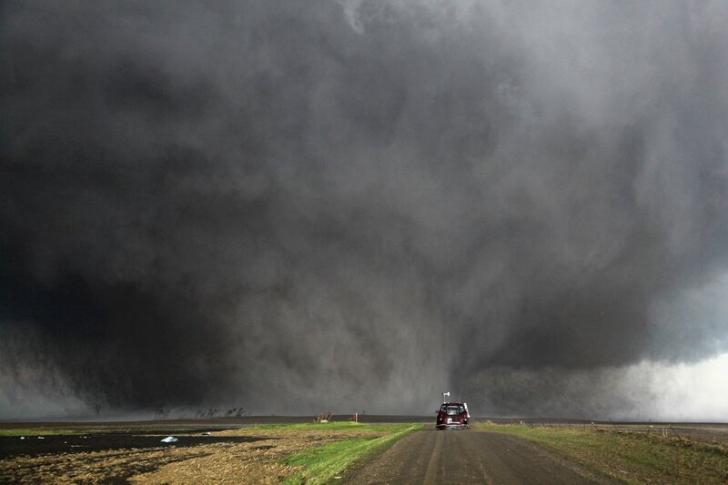 Immer auf der Suche nach dem nächsten Tornado: Filmproduzent Aron Plucinski, Bildregisseur Chris Whiteneck und ihre Teamkollegen gewähren erstmals Einblicke hinter die Kulissen ihrer abenteuerlichen Arbeit als Sturmjäger.