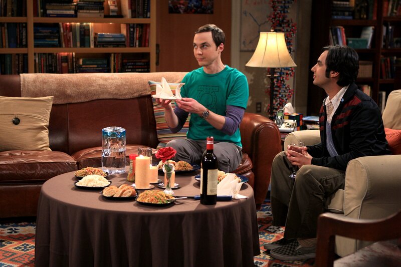 Raj (Kunal Nayyar, r.) ist genervt von dem nächtlichen Lautstärkepegel, den Leonard und Priya verursachen, und zieht deshalb kurzerhand bei Sheldon (Jim Parsons, l.) ein. Doch kann das gutgehen?