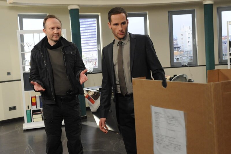Volker Strecker (Alexander Hauff, l.) hat eine besondere Überraschung für David (Lee Rychter, r.) ...
