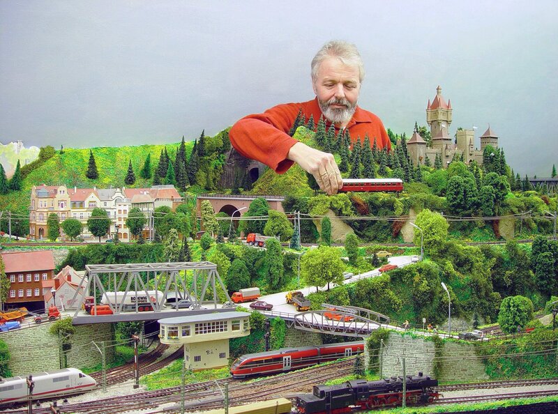 Ob Müngstener Brücke oder Wuppertaler Schwebebahn, in der Modellbahnanlage von Dr. med. Peter Holbeck finden sich Motive aus seiner Heimat in H0-wieder. Vor 50 Jahren, als seine erste Märklin Eisenbahn unterm Christbaum entlang fuhr, wurde Peter Holbeck mit dem Modellbahnvirus infiziert. Selbst heute, nun Arzt für Allgemeinmedizin, hat er dafür kein Gegenmittel. Warum auch, denn das "selige Modellbahnlächeln" ist - obwohl durchaus ansteckend - schließlich keine Krankheit. In Eigenregie entstand auf unterhaltsame Weise ein Portrait seiner H0-Anlage Marke Eigenbau und dabei auch das Portrait seiner eigenen Person, stets gewürzt mit einer Prise Humor. Kurztext: Ob Müngstener Brücke oder Wuppertaler Schwebebahn, in der Modellbahnanlage von Dr. med. Peter Holbeck finden sich Motive aus seiner Heimat in H0-wieder. Vor 50 Jahren, als seine erste Märklin Eisenbahn unterm Christbaum entlang fuhr, wurde Peter Holbeck mit dem Modellbahnvirus infiziert. Selbst heute, nun Arzt für Allgemeinmedizin, hat er dafür kein Gegenmittel. Warum auch, denn das "selige Modellbahnlächeln" ist - obwohl durchaus ansteckend - schließlich keine Krankheit. In Eigenregie entstand auf unterhaltsame Weise ein Portrait seiner H0-Anlage Marke Eigenbau.