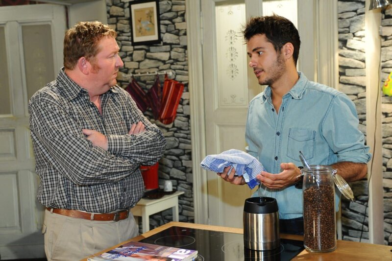 Maik (Sebastian König, r.) muss entsetzt feststellen, dass Dieter (Armin Dillenberger, l.) in der WG verräterische Lektüre gefunden hat ...