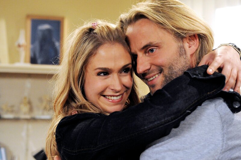 ARD STURM DER LIEBE FOLGE 1344, am Mittwoch um 15:10 Uhr im ERSTEN. Die Münchner Schauspielerin Lea Marlen Woitack wird ab dieser Folge in die Gastrolle der 20-jährigen Debbie Fischer schlüpfen. Schon oft hat Michael (Erich Altenkopf, l.) von seiner Tochter Debbie (Lea Marlen Woitack, r.) gesprochen jetzt ist sie endlich aus den Staaten angereist!