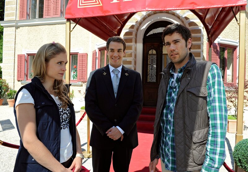 ARD STURM DER LIEBE FOLGE 1360, am Donnerstag um 15:10 Uhr im ERSTEN. Xaver (Jan van Weyde, M.) freut sich, da sich Debbie (Lea Marlen Woitack, l.) und Jacob (Andreas Thiele, r.) gut zu verstehen scheinen.