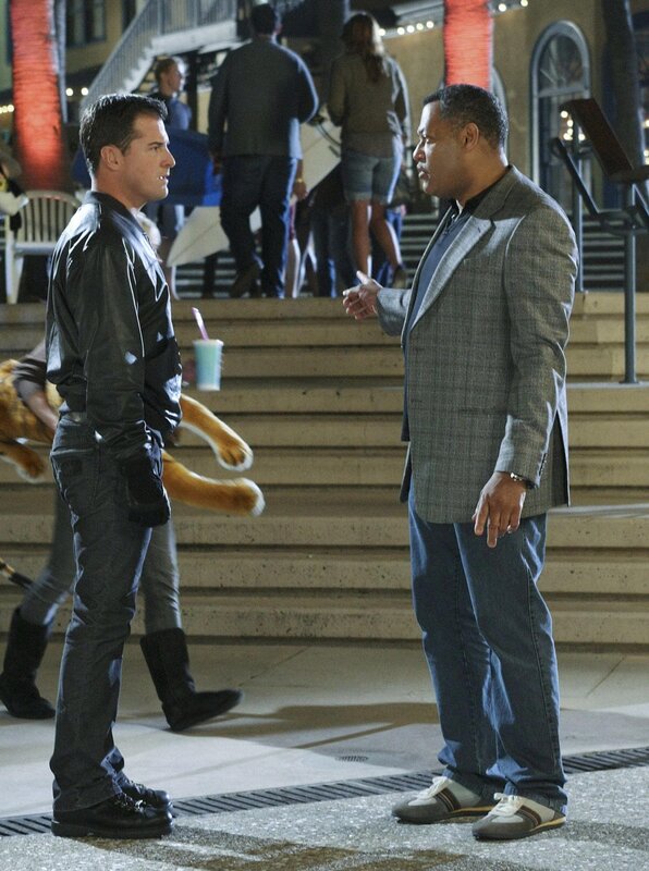 Nick (George Eads, li.) und Ray Langston (Laurence Fishburne) machen sich in einem Vergnügungspark auf die Suche nach Haskell - er darf ihnen einfach nicht noch einmal entkommen...