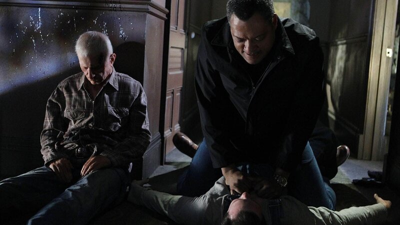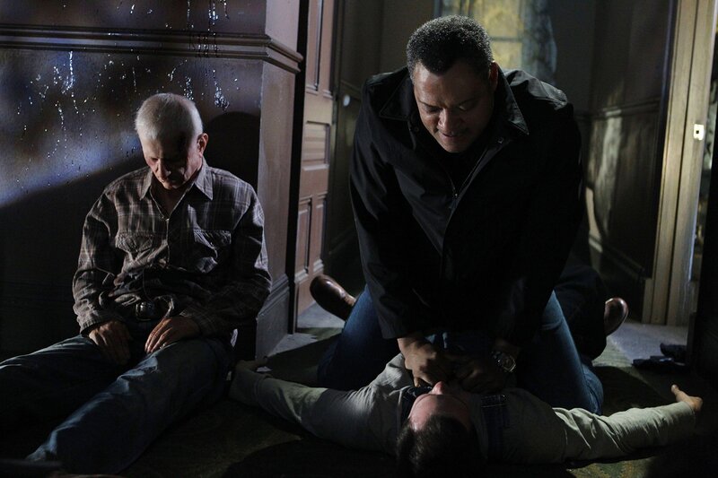 Ray (Laurence Fishburne) schafft es, Nate Haskell (Bill Irwin, unten) zu überwältigen, nachdem dieser offensichtlich seinen eigenen Vater, Arvin Thorpe (Raymond J. Barry, li.) ermordet hat...