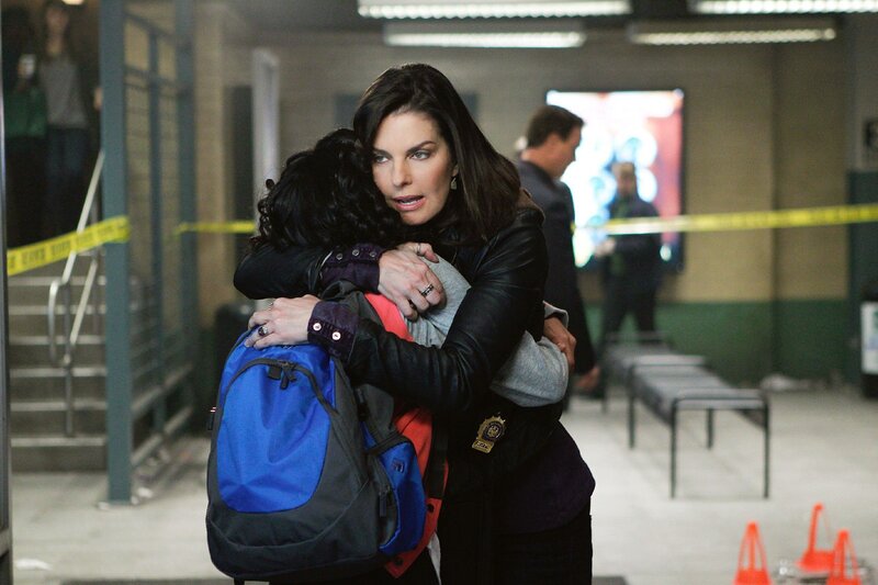 "CSI NY", "Abgezockt." Auf einem U-Bahnsteig wird allem Anschein nach ein alter Mann erschossen. Doch das CSI-Team findet rasch heraus, dass der alte Mann in Wahrheit eine verkleidete junge Frau war und die Tatwaffe zudem keine konventionelle Schusswaffe gewesen sein kann. Währenddessen ermutigt Mac Jo dazu, ihrer Adoptivtochter Ellie endlich die Wahrheit über ihre leibliche Mutter zu erzählen.Im Bild (v.li.): Sydney Park (Ellie), Sela Ward (Det. Jo Danville).