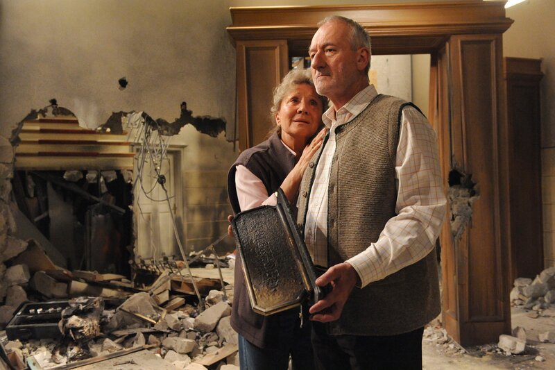 ARD STURM DER LIEBE FOLGE 1384, am Mittwoch um 15:10 Uhr im ERSTEN. Die Explosion hat den Fürstenhof zerstört: Alfons (Sepp Schauer, r.) und Hildegard (Antje Hagen, l.) sind mehr als bestürzt über das Ausmaß der Zerstörung.