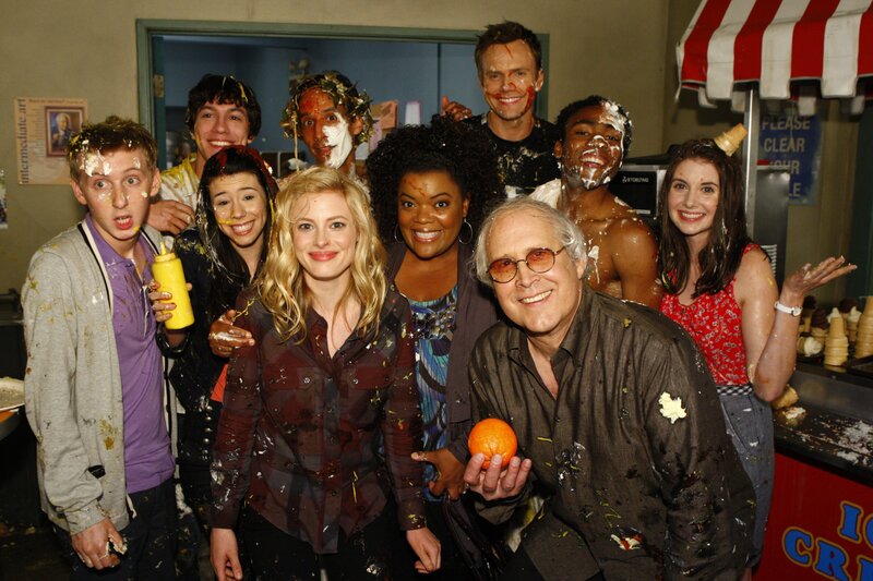 Britta und Jeff (Joel McHale, l.) müssen sich mit Kelly (Jillian Rose Reed, 2.v.r.), Scott (Dean Collins, 2.v.l.) und Mark (Jared Kusnitz, r.), drei vorlauten Highschool-Schülern herumschlagen, deren kindisches Verhalten sie auf die Palme bringt ...