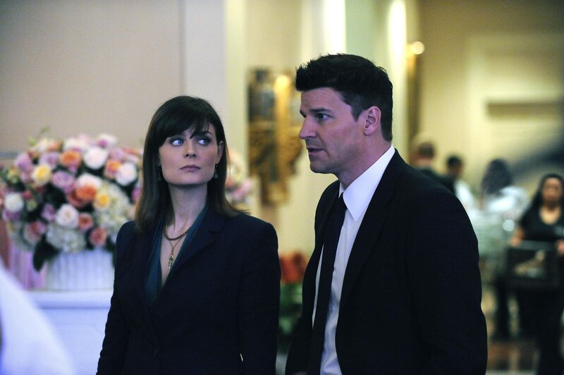 Hodgins (TJ Thyne, l.); Brennan (Emily Deschanel, r.)