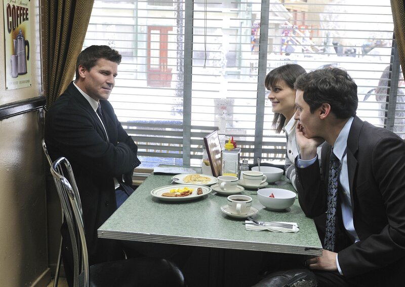• (v.l.n.r.)Booth (David Boreanaz); Brennan (Emily Deschanel); Sweets (John Francis Daley).