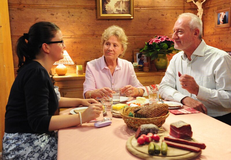 Trotz der aufopfernden Pflege von Theresa (Ines Lutz, M.), hält Michael (Erich Altenkopf, hinten) es für einen Fehler, dass "Moritz" (Moritz Tittel, r.) nicht ins Krankenhaus geht.