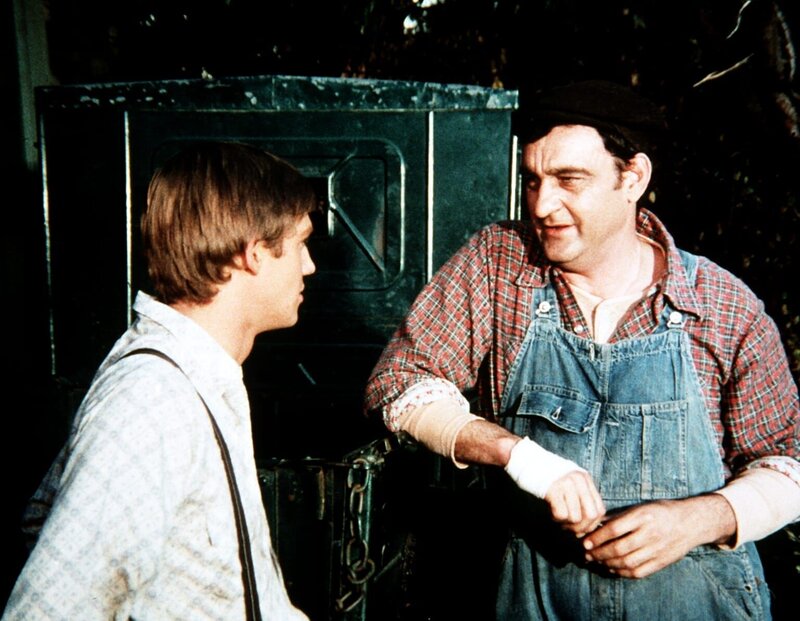 • Curtis Norton (Victor French, r.) erkundigt sich bei John-Boy (Richard Thomas, l.) nach dem Waisenjungen Stevie, der bei den Waltons seine Ferien verbringt.