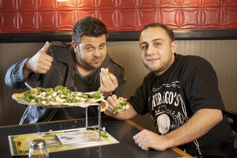Ganz nach seinem Geschmack: Adam Richman (l.) besucht Providence, Rhode Island, das auch für seine einzigartige gegrillte Pizza und für den berüchtigten Triple Murder Burger bekannt ist.