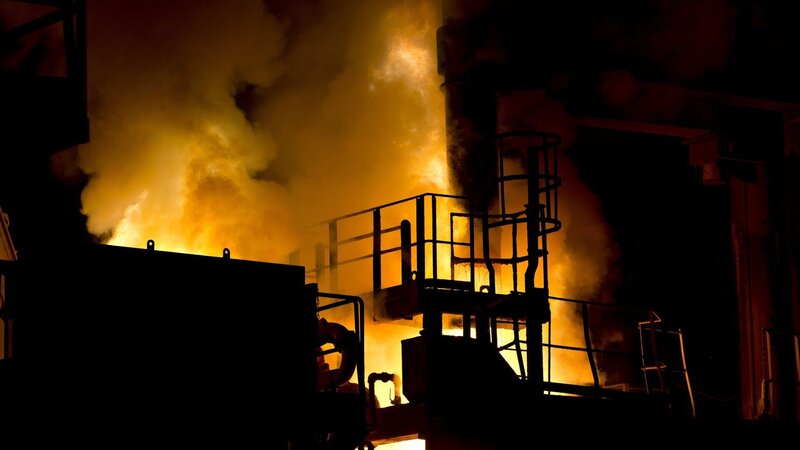 • Flames rise from an electric arc furnace (EAF) at a facility in Indiana, U.S. Photographer: Daniel Acker/Bloomberg