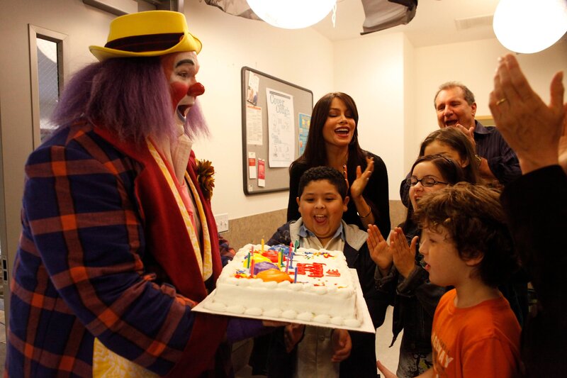 • (v.li.) Cameron alias Clown Fizbo (Eric Stonestreet) und die restliche Familie (Rico Rodriguez, Sofia Vergara, Ariel Winter, Sarah Hyland, Ed O'Neill) verlegen Lukes (Nolan Gould) Geburtstagsfeier kurzerhand ins Krankenhaus.