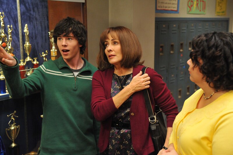• Mike (Neil Flynn, l.) ist der Meinung, dass heutzutage viel zu viele Trophäen verteilt werden und die Pokale damit ihren Wert verlieren. Frankie (Patricia Heaton, r.), Axl (Charlie McDermott, 2.v.l.) und Brick (Atticus Shaffer, 2.v.r.) sind eher der Meinung, dass Mike nur nicht will, dass sein alter Pokal im Trophäenschrank durch einen neuen ausgetauscht wird ...