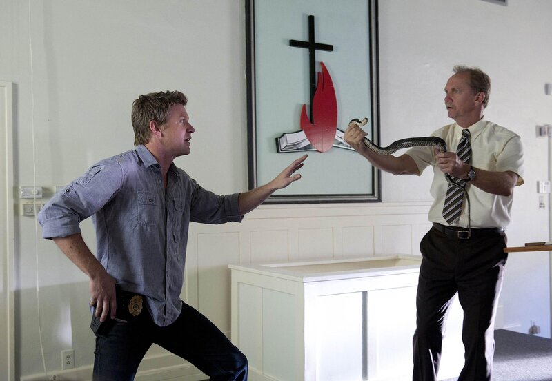 Jim muss eine ganze Reihe von Verdächtigen verhören, nachdem der Assistenzpfarrer Aaron Matthews in der Kirche der "charismatischen Pfingstgemeinde" tot in einem Schlangenkäfig gefunden wurde.