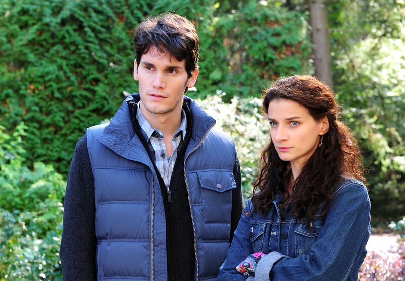 Elena (Lili Gesler, r.) möchte, dass Peter (Daniel Fünffrock, l.) sie zu der Einladung von Theresa und Moritz begleitet.