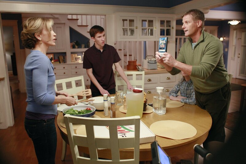 Während sich Gabrielle Sorgen um Carlos macht, der aus der Entzugsklinik verschwunden ist, versuchen Lynette (Felicity Huffman, l.) und Tom (Doug Savant, r.) mit ihren Kindern Parker (Joshua Moore, 2.v.l.) und Penny (Darcy Rose Byrnes, 2.v.r.) ein normales Leben zu führen ...