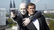 Als Kim Krüger (Katja Woywood) ihren Ex-Mann zu Hause aufsuchen will, wird sie dort von Bronski (Dimitri Bilov, l.) und seinem Schergen (hinten r. Komparse) überwältigt.