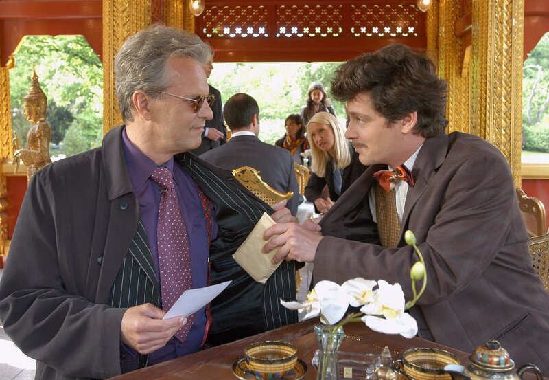 • Der Gigolo Matteo (Peter Sattmann, links) soll dem Schokoladen-Fabrikanten Bertram Mayrhofer (Fritz Karl) Rosas Pralinenrezept beschaffen.
