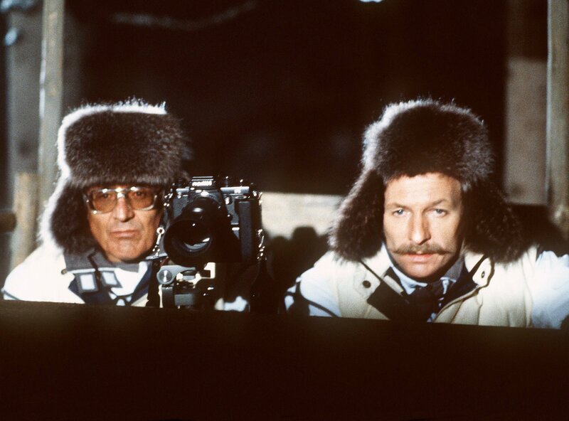• Im tief verschneiten Wald wollen Herbie (Dieter Hildebrandt, l.) und Baby Schimmerlos (Franz Xaver Kroetz) eine Geschichte recherchieren, die den reichsten Mann der Republik ins Zwielicht und ihnen das große Geld bringen soll.