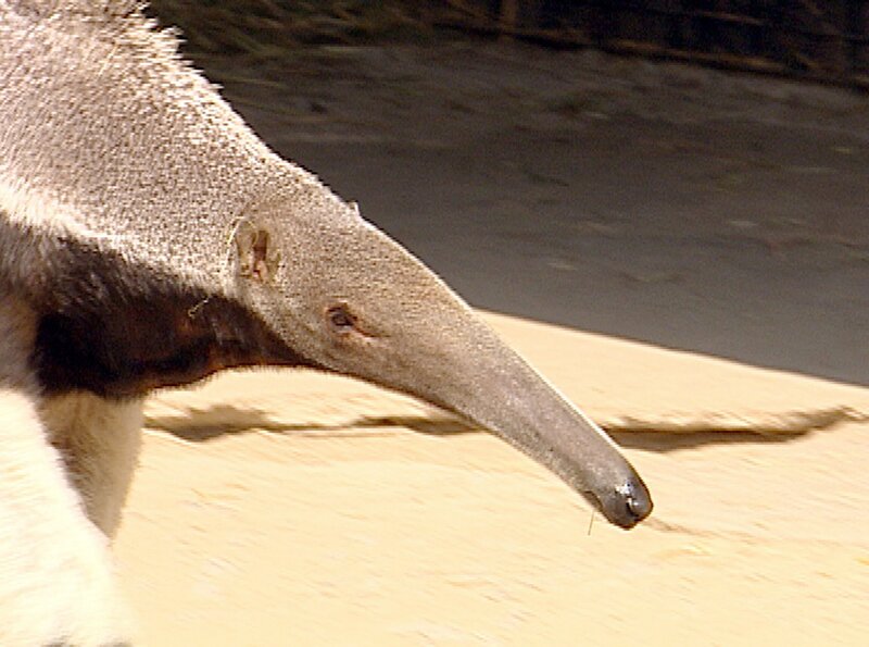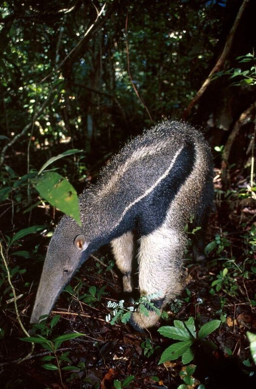 In der Nähe von Boa Vista, einer kleinen Stadt im Norden Brasiliens - ausgerechnet in den wachsenden Holzplantagen, die dort seit ein paar Jahren vielen Tierarten den natürlichen Lebensraum nehmen - findet der Große Ameisenbär offensichtlich eine optimale Umgebung vor - kaum natürliche Feinde, dafür aber ausreichend Nahrung unter den Blättern der Akazienbäume.