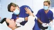 • Entsetzt stellt Dr. Christian Roehrs (Siemen Rühaak) fest, dass nach dem Facelifting bei Valerie von Mantritz (Franziska Bronnen) eine Gesichtslähmung aufgetreten ist.