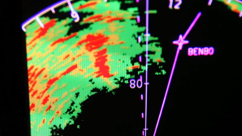 • Toronto, ON, Kanada - Die Flugbesatzung verfolgt den Sturm auf dem Radar.