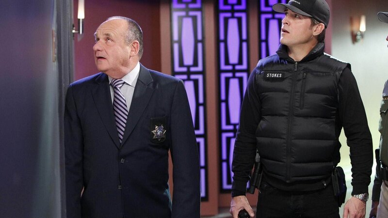 • Auf der Suche nach dem Fluchtweg des Mörders entdeckt Captain Brass (Paul Guilfoyle, li.), dass eine Fluchttür vom Casino ins Treppenhaus zum Hotelturm offen stand. Für Nick (George Eads) und seine Kollegen bedeutet das eine langwierige Suche von Tür zu Tür.