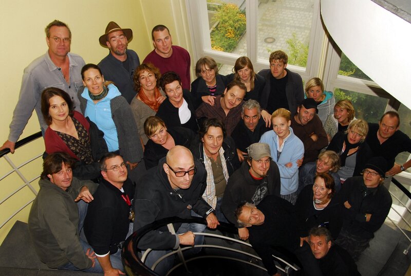 Regisseur Manuel Siebenmann im Kreise seiner Hauptdarsteller Teresa Weißbach und Thomas Schmauser sowie dem Filmteam von "Freiwild. Ein Würzburg-Krimi".