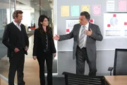 • Im verriegelten Spind einer stillgelegten Fabrik wird der Leichnam des Finanzbrokers Antonio Castro gefunden, der ein knappes Jahr zuvor offenbar lebendig und an Händen und Füßen gefesselt dort eingesperrt worden war. Patrick (Simon Baker, l.) und Teresa (Robin Tunney, M.) beginnen zu ermitteln und hoffen auf Hilfe von Dennis Victor (Ray Wise, r.) ...