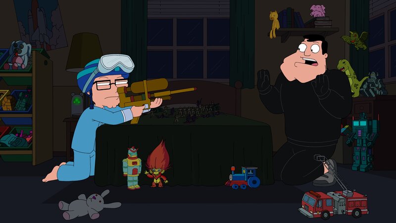 Stan ist entsetzt, dass sein vierzehnjähriger Sohn immer noch mit Spielsachen spielt und sich in Fantasiewelten flüchtet. Damit Steve endlich erwachsen wird, plant Stan, sich nachts heimlich in Steves Zimmer zu schleichen und den ganzen Kinderkram wegzuschmeißen. Francine hatte einen Unfall im Supermarkt und hat zum Ausgleich zwei saftige Steaks geschenkt bekommen. Da Stan wieder mal länger arbeitet, möchte sie Roger zu einem schönen gemütlichen Steakessen einladen.