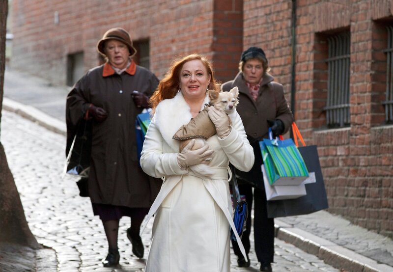 ARD HEITER BIS TÖDLICH - MORDEN IM NORDEN FOLGE 16, "Das Horn von Lübeck", am Dienstag (19.06.12) um 18:50 Uhr im ERSTEN. Babsi Kräppsl (Petra Berndt, M.), die Tochter von Rias (Ulrike Bliefert, l.) und Tonis (Petra Kelling, r.) Münchner Freundin Therese, quartiert sich und ihren verzogenen Chihuahua Dolce bei Finns Tanten ein, um sich von ihrer Scheidung zu erholen.