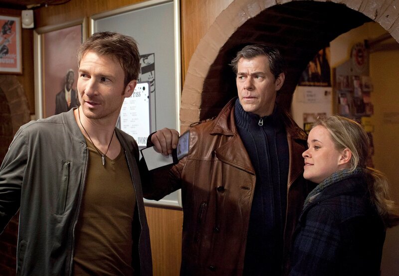 • Eine Spur im aktuellen Mordfall führt die Ermittler, Sandra Schwartenbeck (Marie-Luise Schramm, r.) und Finn Kiesewetter (Sven Martinek, M.), in die "Ivory" Bar, wo sie auf Liechtenstein (Heiko Ruprecht, l.) treffen.