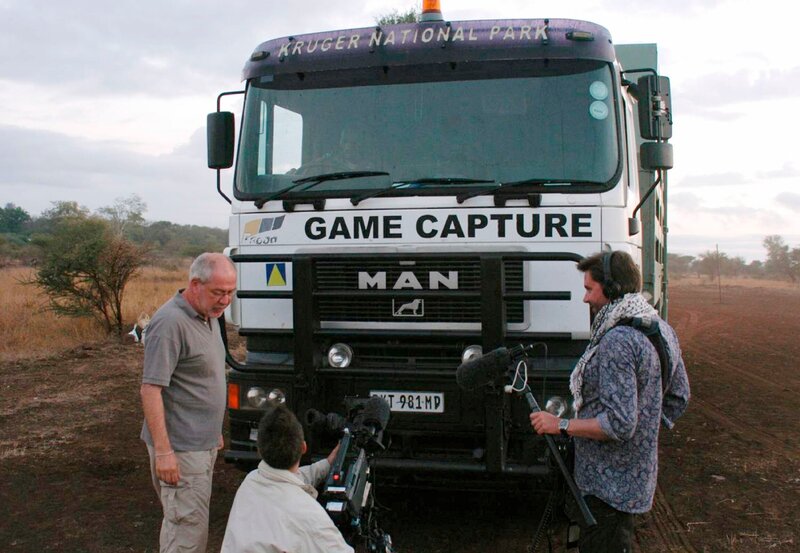• Bayerisches Fernsehen WELT DER TIERE, "Mosambik-Express". Das BR-Team beim Eintreffen des Giraffentransportes.