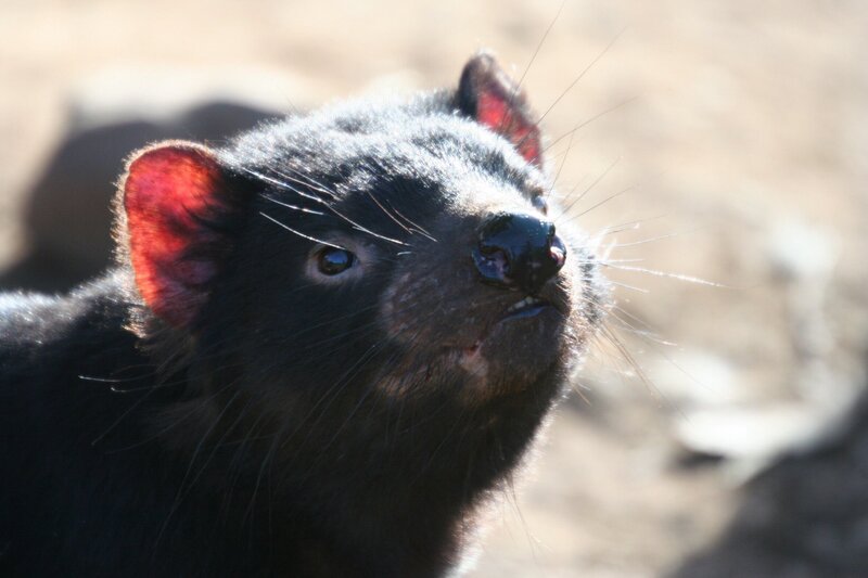 Ein Tasmanischer Teufel nimmt Witterung nach Aas auf.