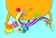 In the middle, second from the left: Lady Rainicorn (Niki Yang), On the bottom: Finn (Jeremy Shada)