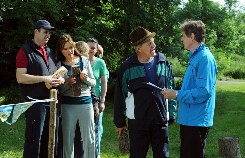 Rolands Ehrgeiz kommt nicht bei allen Lansingern gut an. Von links: Hubert Kirchleitner (Bernhard Ulrich), Trixi Preissinger (Doreen Dietel), Lorenz Schattenhofer (Werner Rom) und Roland Bamberger (Horst Kummeth).