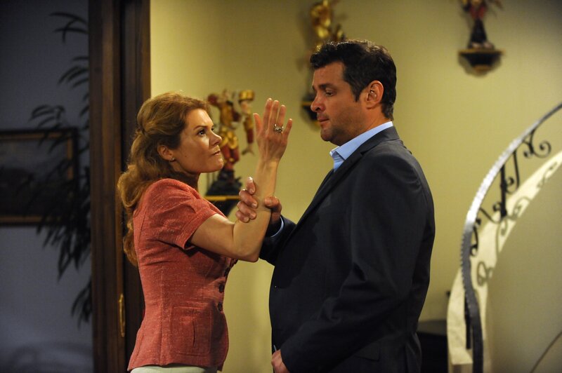 • Alfons setzt Uschi unter Druck. Von links: Uschi (Silke Popp) und Alfons Guggenmoser (Christian K. Schaeffer).
