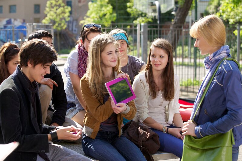 Marie Stein (Henriette Zimmeck, rechts) hat illegal einen Film aus dem Internet heruntergeladen, um sich bei ihren Klassenkameraden Anerkennung zu verschaffen. Als sie Steffen Siebert (Timon Wloka, links) den USB-Stick überreicht, muss Marie jedoch erkennen, dass sich nichts geändert hat. Ihre Rivalin Jennifer Taubitz (Helena Sigmund-Schultze) präsentiert ein völlig entstelltes Foto von Marie, welches sie gepostet hat.