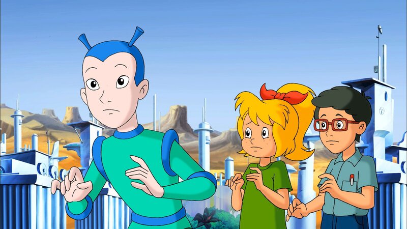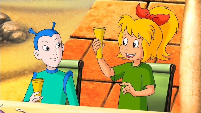 • Bibi und ihr neuer Freund Pux stoßen auf die Rettung des Planeten Quandalan an.