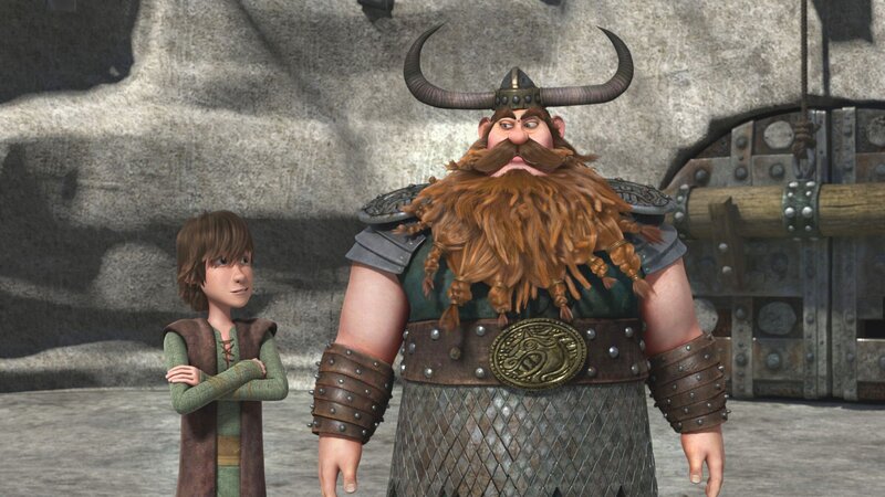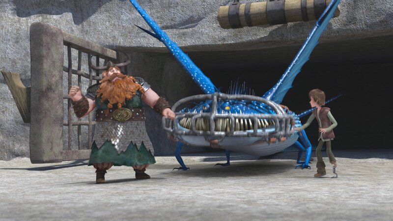Haudrauf (re.) will endlich einen eigenen Drachen besitzen. Doch er will nicht irgendeinen Drachen, sondern ausgerechnet einen wilden Donnertrommler. Glücklicherweise hilft Hicks ihm bei der Zähmung.