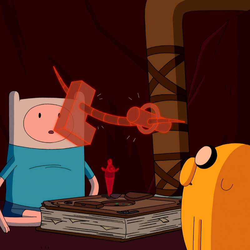 Bottom to top: Finn (Jeremy Shada), Jake (John DiMaggio)