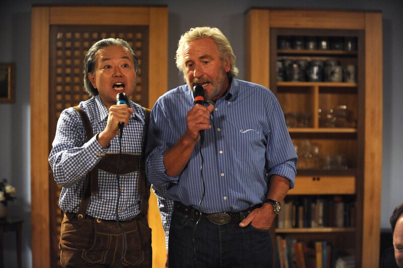 Mit Karaoke hat Martin seinem japanischen Geschäftspartner eine Freude gemacht. Von links: Herr Koyama (Gen Seto) und Martin Kirchleitner (Hermann Giefer).