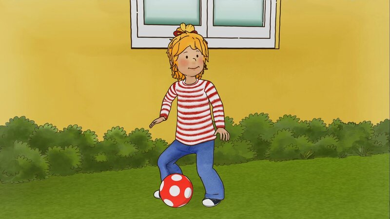 • Conni möchte richtig Fußball spielen lernen.