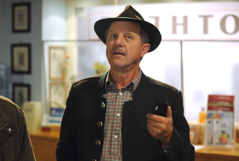 Lorenz (Werner Rom) wundert sich über den Klingelton seines Handys.